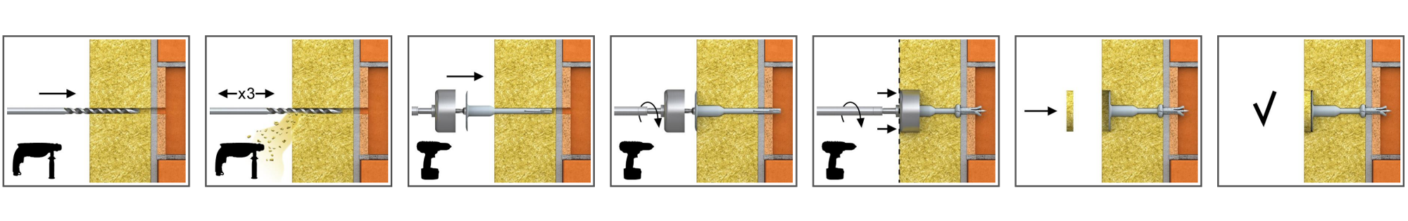 Această combinație este utilă în special pentru aplicațiile cu vată bazaltică, unde după îngroparea diblului este necesară completarea golului pentru nivelarea corectă a suprafeței.